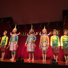 The tables are low and give the impression that we need to sit on the floor, which is the traditional way to eat thai food, but the space under the table is hollow to rest our feet. After the drinks are ordered the food is served. Sour and spicy seafood soup, followed by rice and Thai green curry, with stir fried vegetables, spring rolls and a batter fried fish dish. This is followed by fruits and tea. The dancers come on the stage around eight and give us a rendition of scenes from the ‘Ramayanam’.