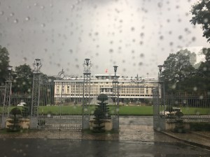 Our last stop is the Independence Palace. It is almost closing time at the Palace and we are not allowed in. It is also pouring down with rain and so no one ventures out from the coach to take a photo. Su Ann tells us about the building and the army tank which can be seen through the gates. I take a photo from the comfort of my seat in the coach. It has been another long day. This evening we are having our farewell dinner in a restaurant in the city and tomorrow we have free time to explore Ho Chi Minh city till we leave in the evening to make our way back home.